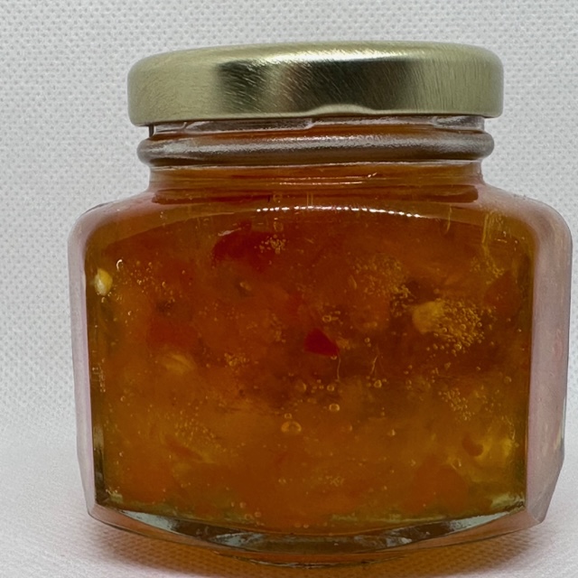 This year, we played with all sorts of pepper combinations to make a variety of pepper jellies at various heat levels. This particular straw- jelly is much hotter than a jalapeno pepper jelly, but is absolutely delicious.